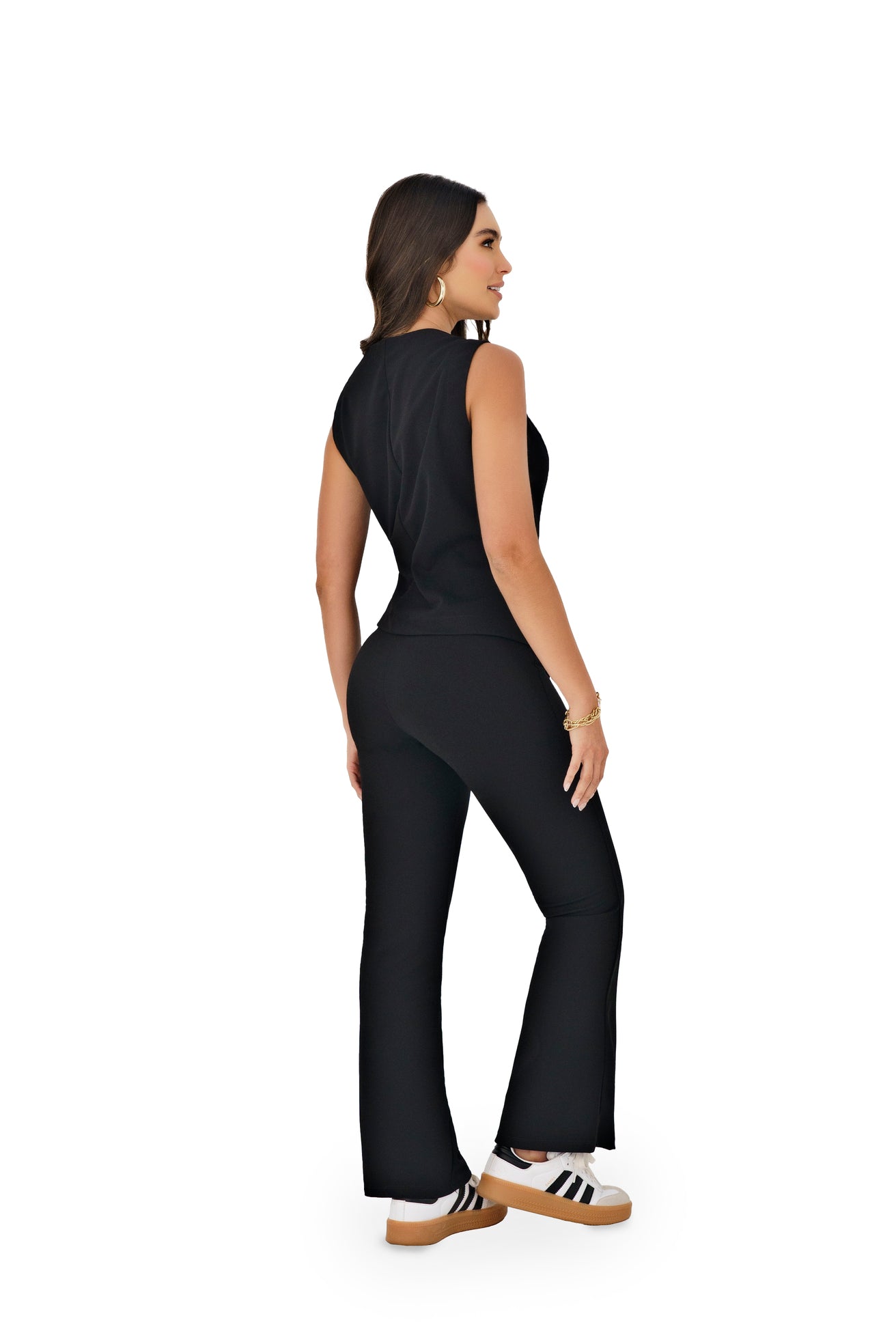 Nox es un chaleco en poliéster stretch con silueta ajustada, diseñado para realzar la figura con un toque de estilo urbano y moderno.