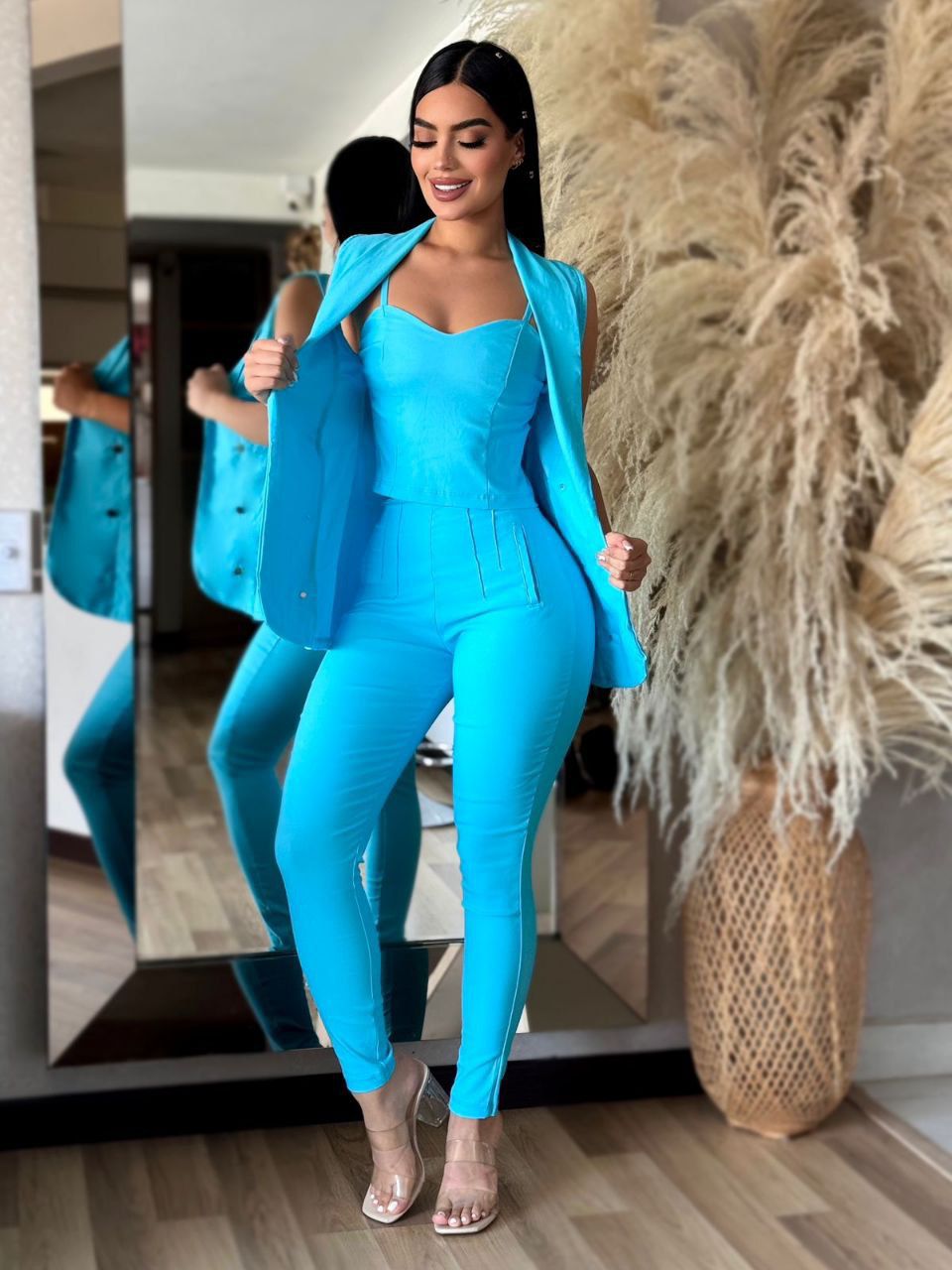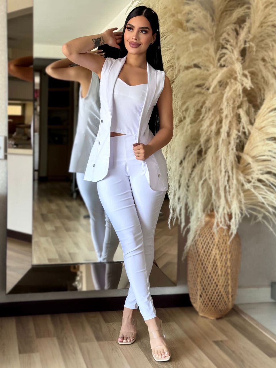 Déjate envolver por la suavidad y fluidez de Conjunto Esbelt, un conjunto de silueta amplia confeccionado en bengalina licrada que ofrece confort y estilo sin esfuerzo. Junto a nuestro hermoso conjunto color neutro elegante y casual. Su tono neutro la convierte en una pieza versátil, ideal para combinar con cualquier look, desde lo casual hasta lo elegante. Disponible en talla unica